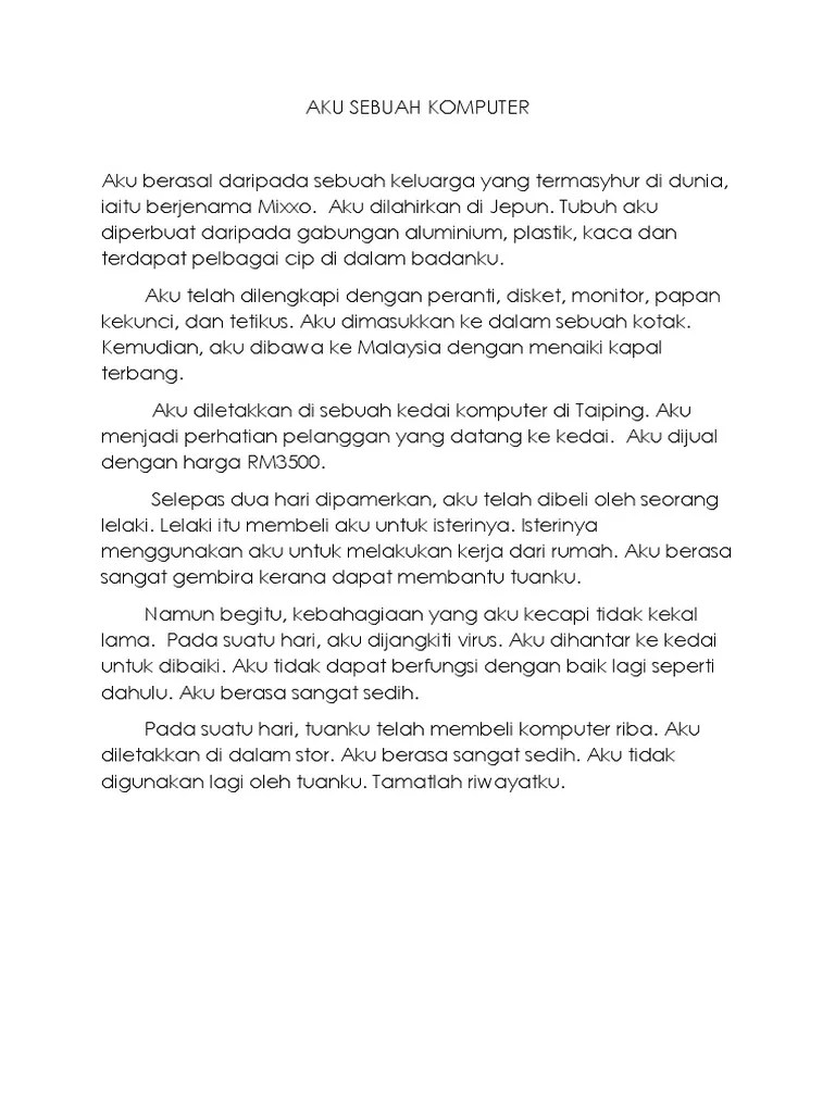 Contoh karangan bahasa malaysia sk dan sjkc / tahun 4,5,6 upsr karangan jenis autobiografi 1 tulis sebuah karangan yang bertajuk " aku sebuah komputer". Tandai sebagai konten tidak pantas. You can do the exercises online or download the worksheet as pdf. Edutopia karangan aku sebuah komputer riba. Aku berwarna putih dan bentuk . Simpansimpan aku sebuah komputer riba untuk . Zai muhd · aku seekor ikan. Unduh sebagai docx, pdf, txt atau baca online dari scribd.